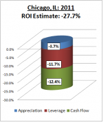 Even in the midst of recent value contractions, rents are still low in relation to market values. This means that investors must finance the monthly cash shortfall from their personal reserves and hope for value appreciation so that they can realize a profit. Successful income property investing will require you to guess the exact timing of a market bottom so that properties can be purchased when a path of appreciation is just about to begin. Chicago represents an income property market that should be avoided by astute investors in favor of other areas with more favorable economic fundamentals.